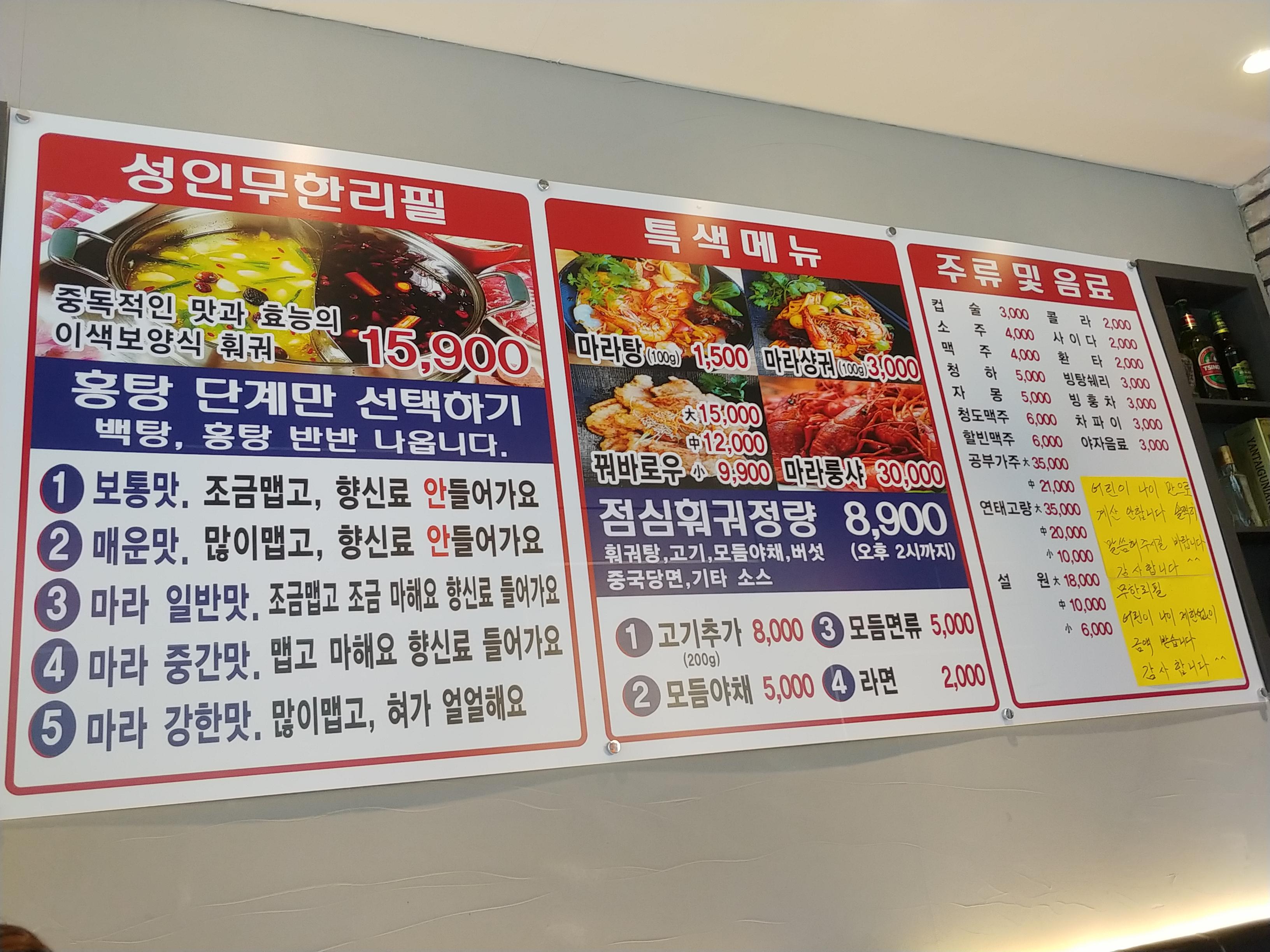 안타까운점은 중국에서 먹었던 훠궈를 생각하고, 홍탕 최고 쌘 마라홍탕으로 시켰는데..