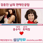 궁합보러 가기 ㅎㅎㅎㅎ 저는 이렇게 나왔네요~ㅎㅎ 어떻게 보면 맞는게, 저는 두산팬이라서 홍수아랑 아마 죽이 잘 맞을 듯... (혼자만에 생각인가? ㅎㅎㅎㅎ) 하여튼 조여정 누님이 나온 것은 순간 쌩뚱맞았지만...